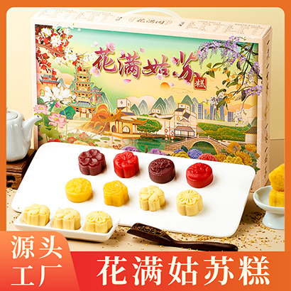 口味包含:紫薯味糕、白桃味糕、蔓越莓味糕、桂花绿豆糕